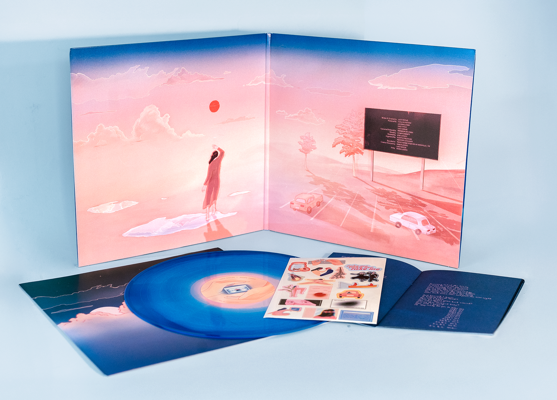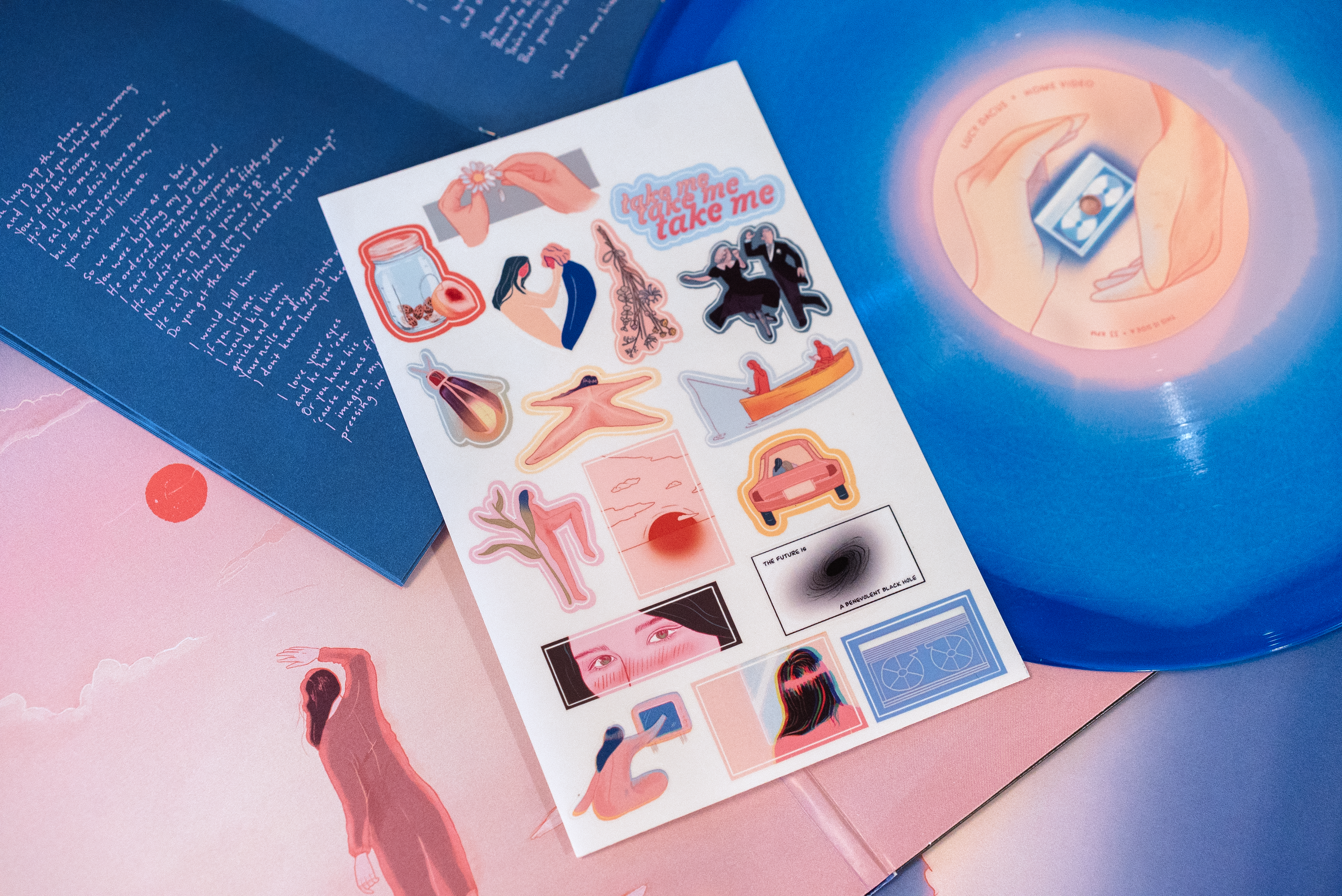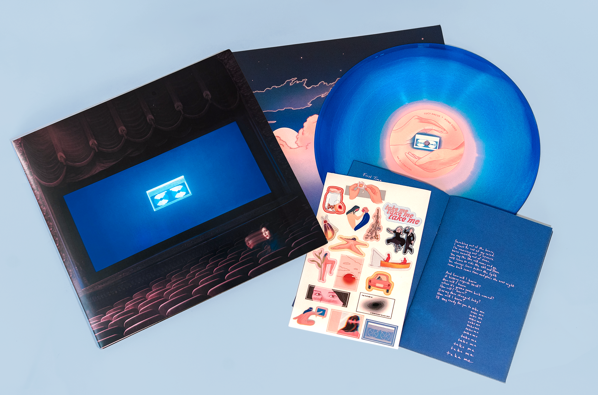 The ominous, almost sinister lighting of the front and back cover frame the bright, warm illustrated world they contain, paralleling the album's conflicting sentiments around formative memories, The deluxe vinyl packaging elements are built around intimacy, containing a handwritten lyric book, a sticker sheet, and a personal note from Lucy.