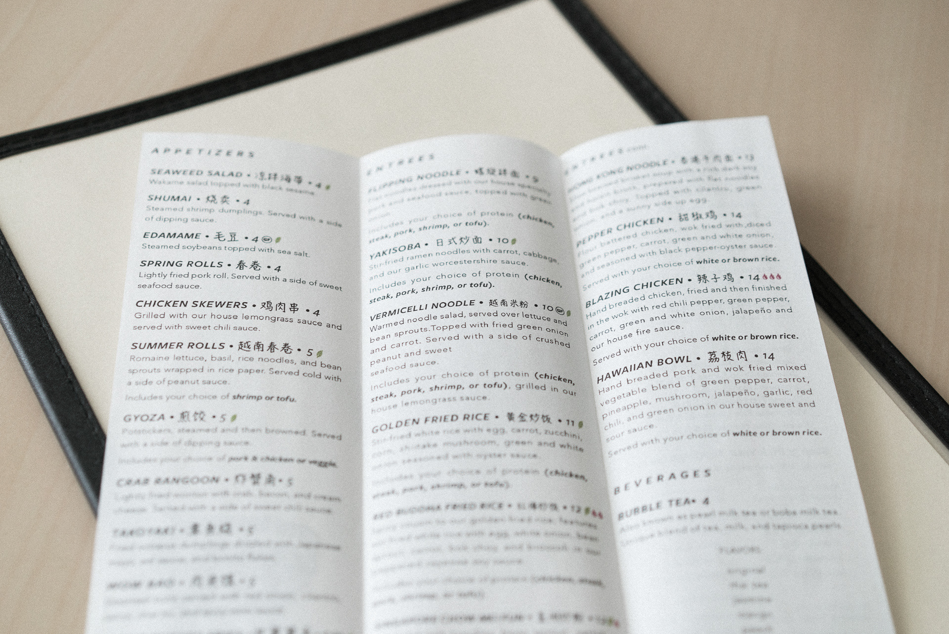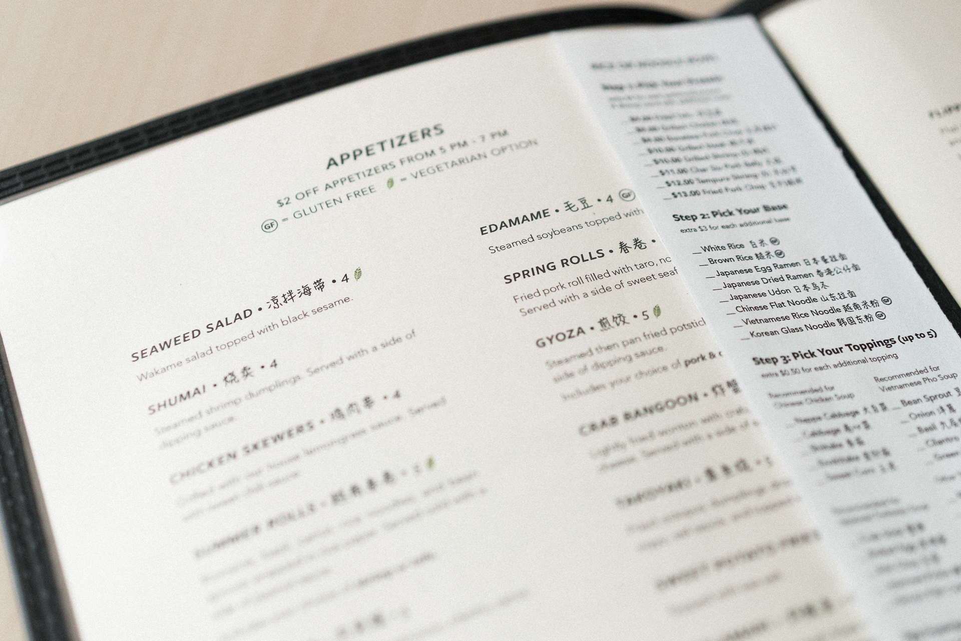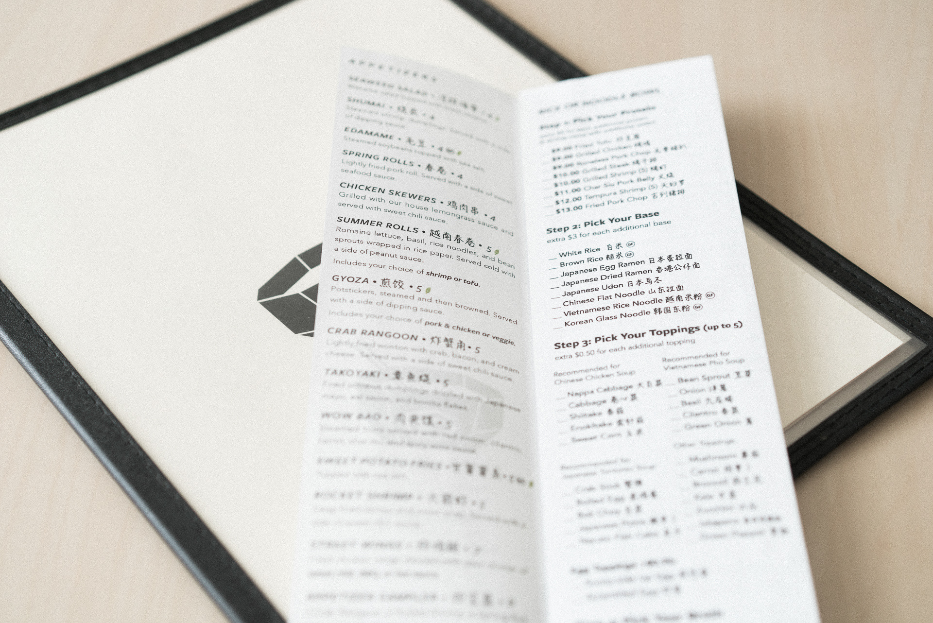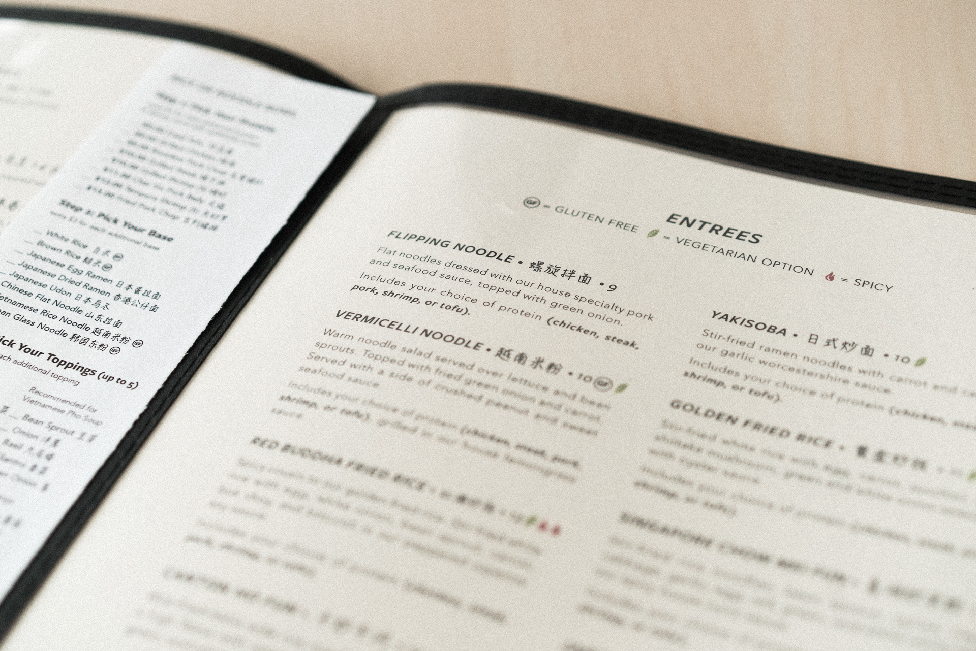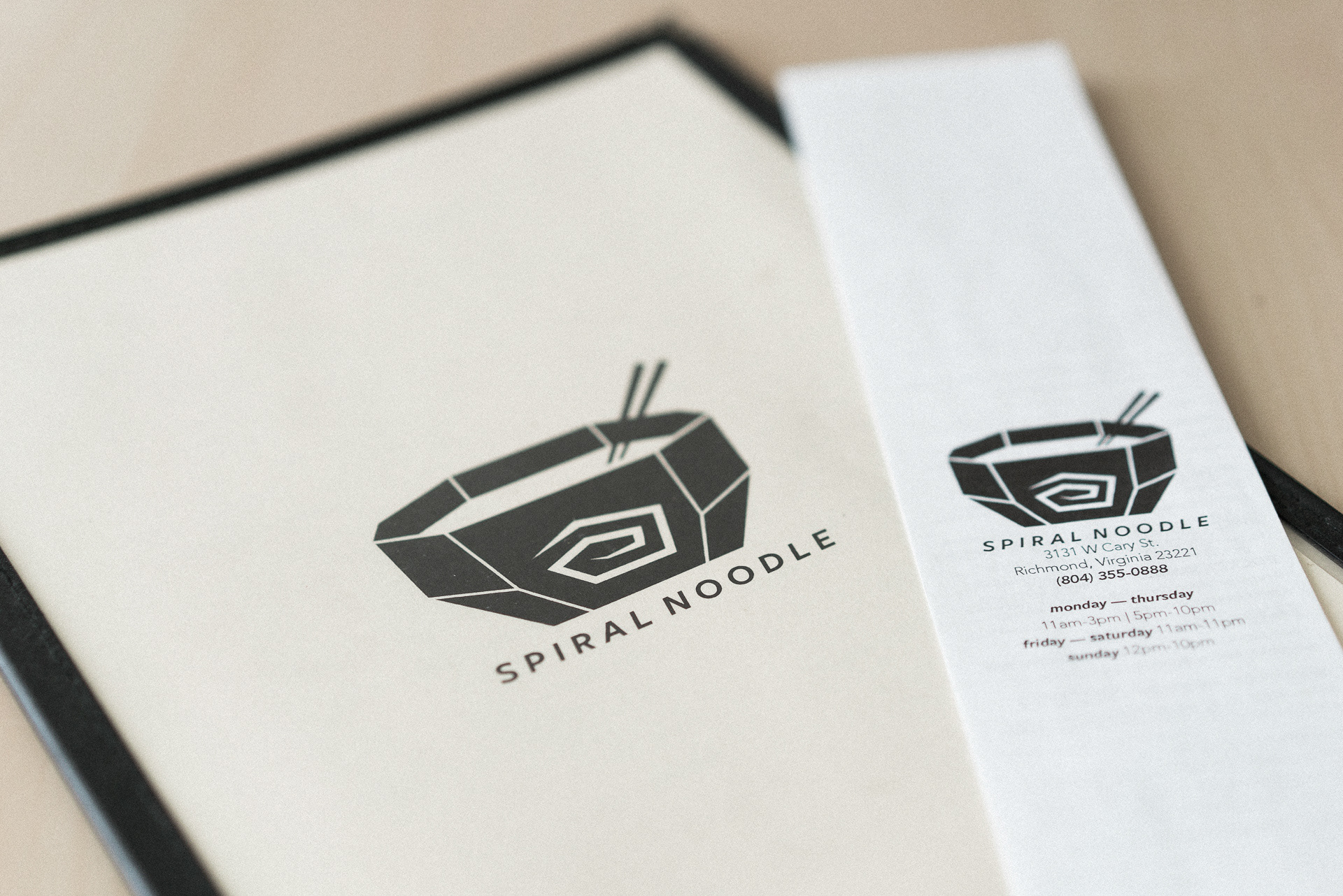 Menu redesign for Asian fusion restaurant Spiral Noodle (RIP)